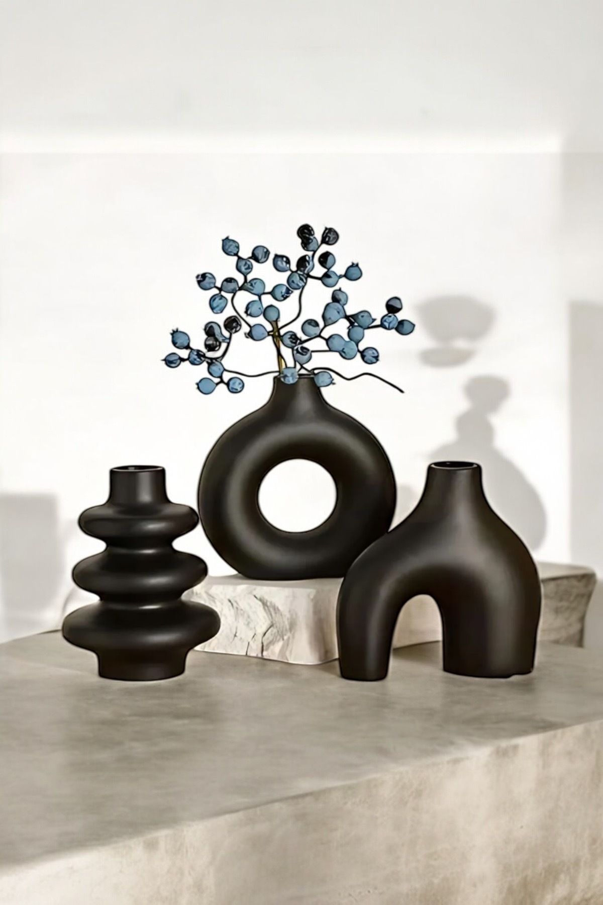 Dekoratif Biblo 3’lü Siyah Parlak Obje Setler | Dekorasyon Vazolar