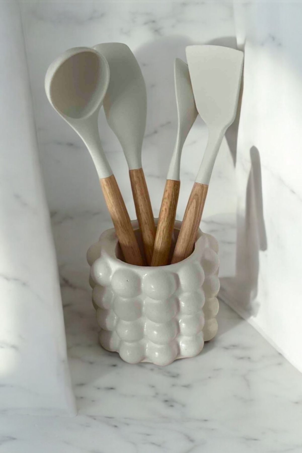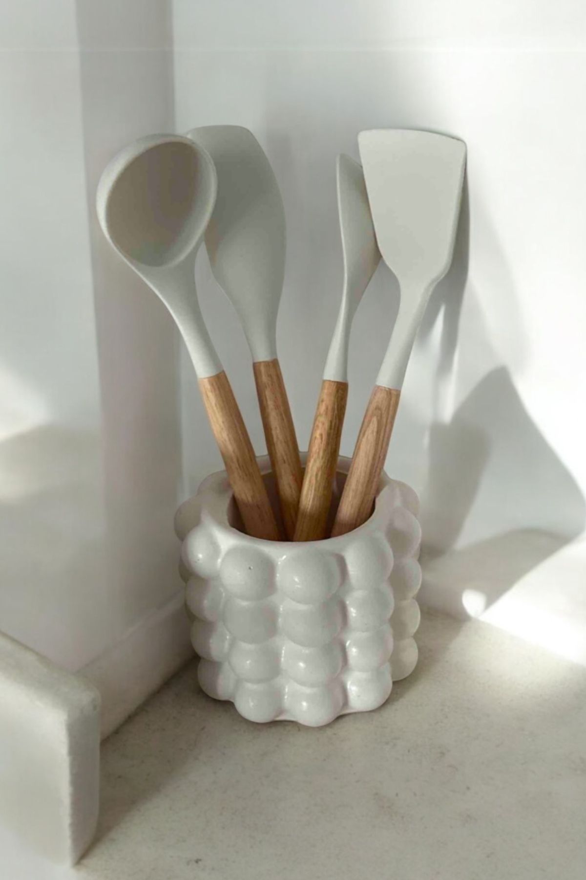 Bubble Baloncuklu El yapımı Beton Tezgah Üstü Dik Kaşıklık Kepçelik Dekoratif Mutfak Organizeri