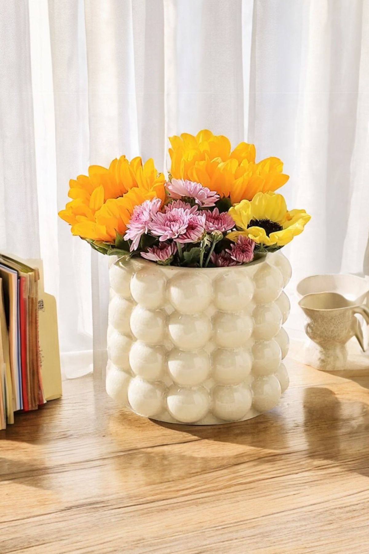 Kaşıklık Parlak Beyaz Baloncuklu | Çeyizlik Kuru Çiçeklik