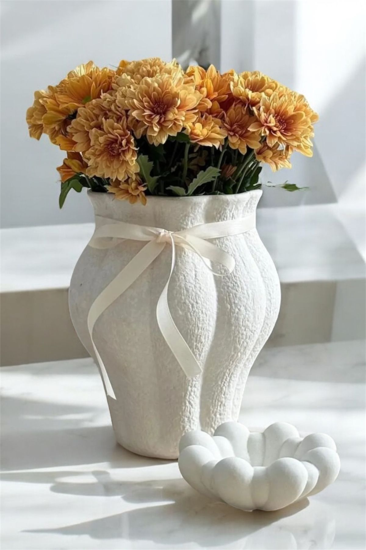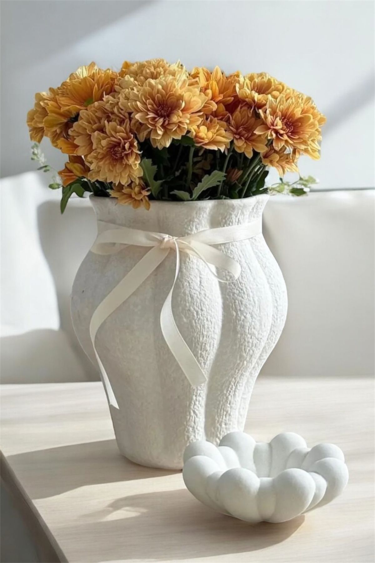 Gözde Hobi Baloncuklu Beyaz Parlak Vazo Bubble Dekoratif Çiçeklik Vazo Beyaz